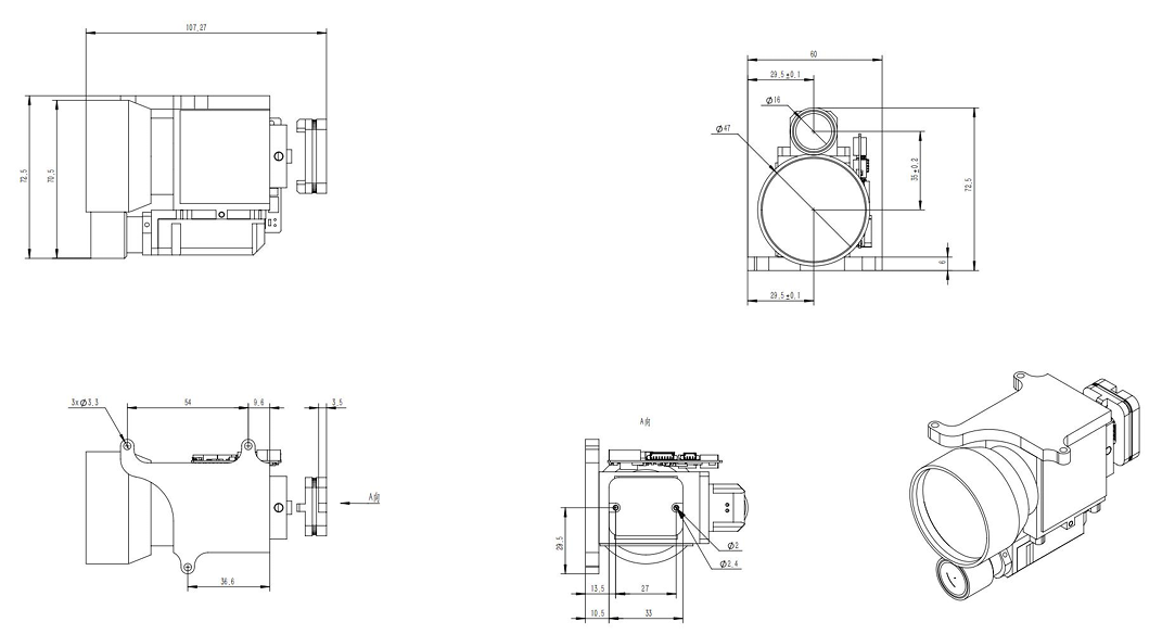 The 1535nm laser ranging module utilizes an eye-safe wavelength (Class 1 IEC 60825-1) with a compact design (typical size ≤107×62×72mm, weight ≤335g) and low power consumption, enabling ultra-long-range detection (up to 20km, ±1m accuracy). This product is a transceiver lens, suitable for long-distance differential ranging, with a minimum ranging distance of not less than 50 meters.