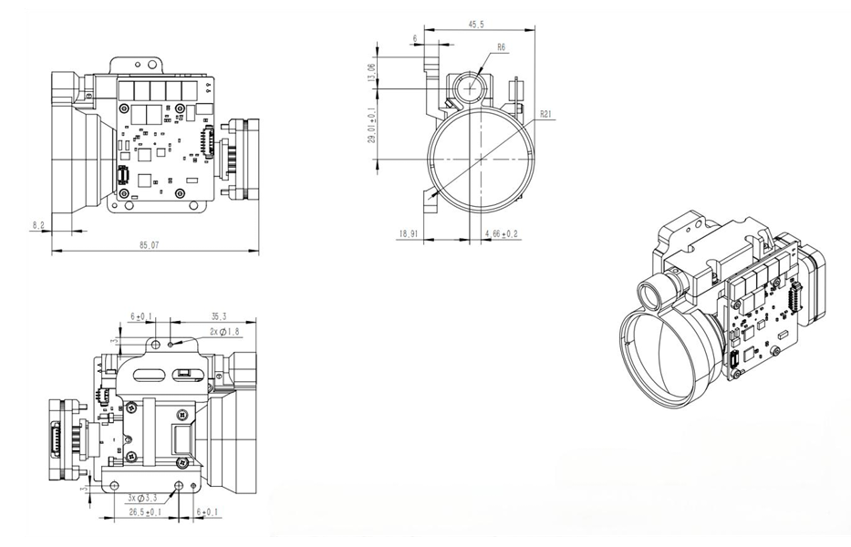 The LRF0815C-02 laser rangefinder module operates at an eye-safe 1535nm wavelength (compliant with EN60825-1:2003), featuring an uncased compact design, lightweight construction (<200g), and broad operating temperature range (-40°C to +65°C). This product is a mid-to-long-range ranging module with a distance error of ≤2m.