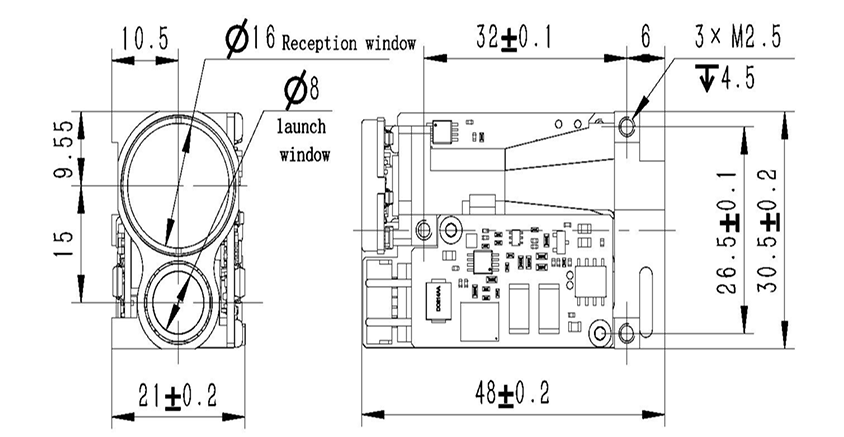 The LRF0405C-02 is a Class 1 eye-safe laser ranging module featuring a 200μJ 1535nm erbium glass microchip laser, It delivers a ranging capability ≥4000m for NATO standard targets (2.3m×2.3m) and operates within -40℃~+65℃ extremes.